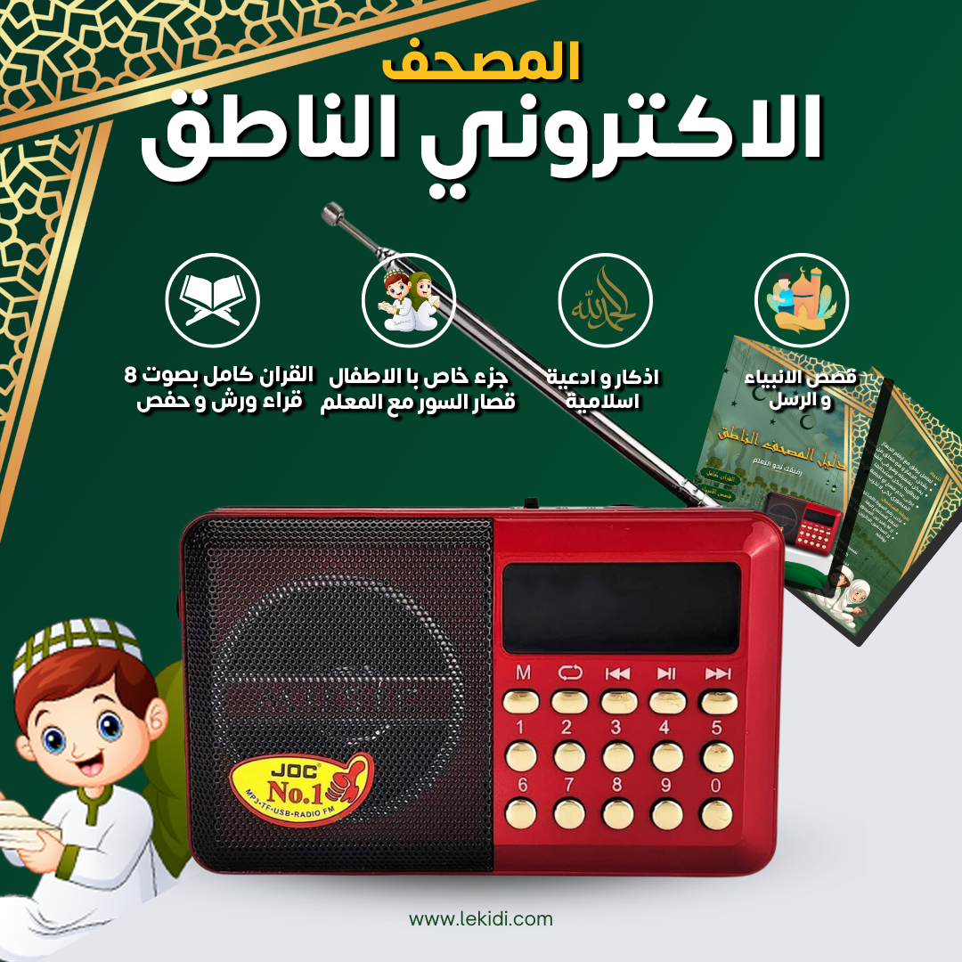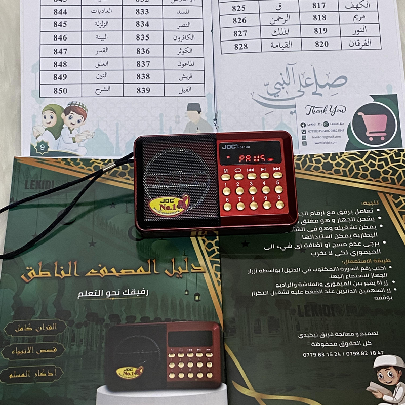 أفضل هدية يمكنك أن تقدمها لوالديك او الى اطفالك و لمن تحب خصوصا في هاد العواشر، راديو إلكتروني يحتوي على القرآن الكريم كاملا مسموع بصوت عدة قرائ، ويحتوي على السيرة النبوية وقصص الأنبياء والرسل وأذكار الصباح والمساء والرقية الشرعية و دعاء الختم، اشتري الآن وادفع لاحقا عند استلام المنتج.
